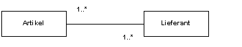 Ein Artikel kann von mehreren Lieferanten bezogen werden, ein Lieferant liefert mehrere Artikel. Im Datenmodell wird diese Beziehung in einer zusätzlichen Tabelle abgebildet, die nur die jeweiligen Objekt-IDs von Artikel und Lieferanten enthält, zwischen denen diese Beziehung besteht.